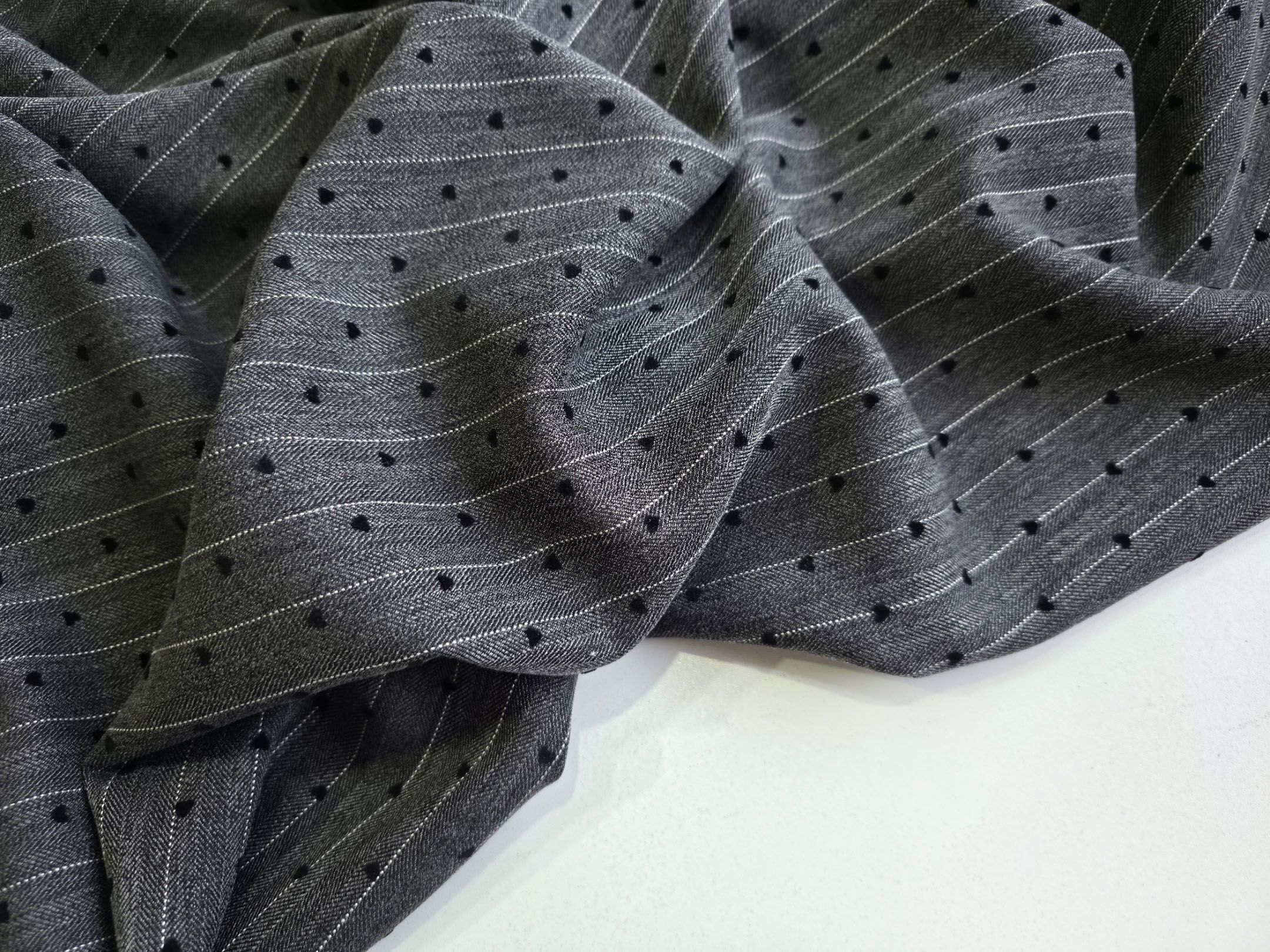 АНТРАЦИТ - Костюмная ткань "елочка" с сердечками (1392 Евгения)