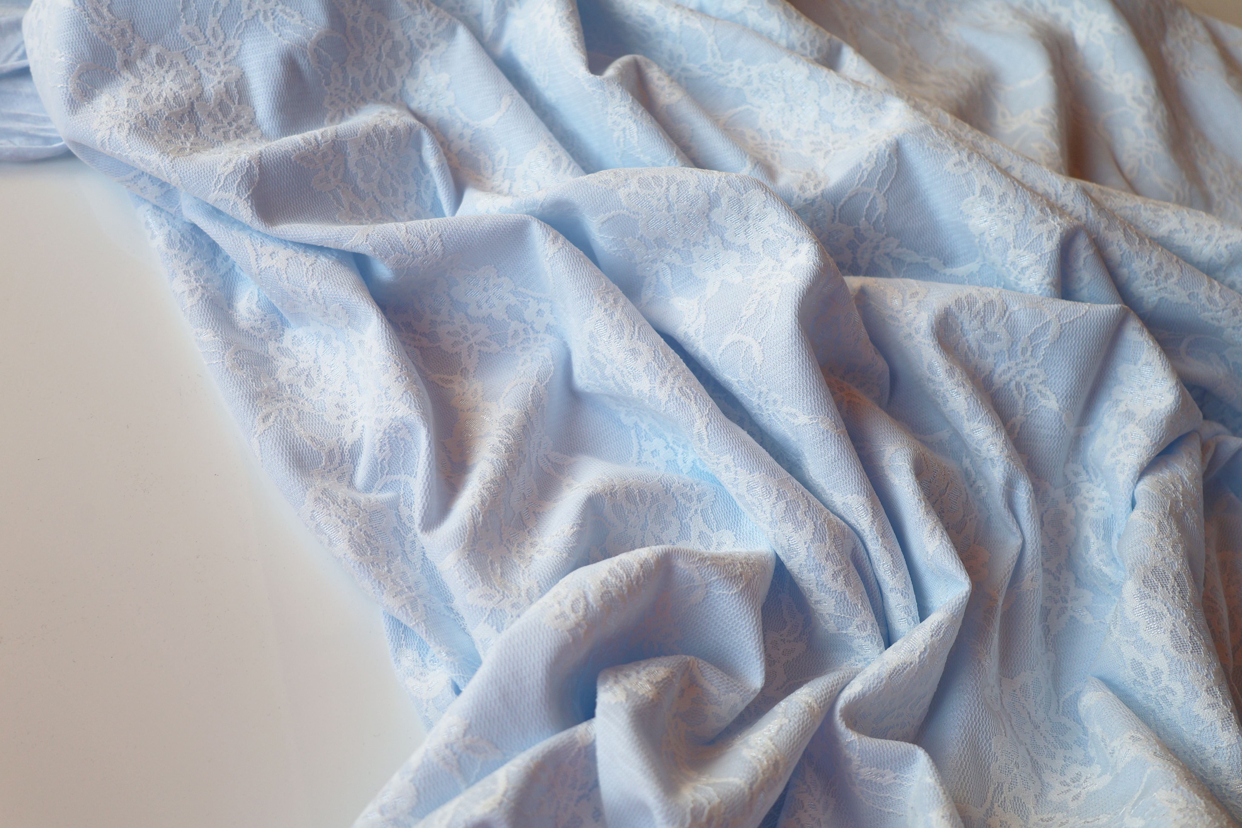 ГОЛУБОЙ - Хлопковый трикотаж с кружевом (1421 Маша) (к1 неровно склеено кружево, от кромки 35см)