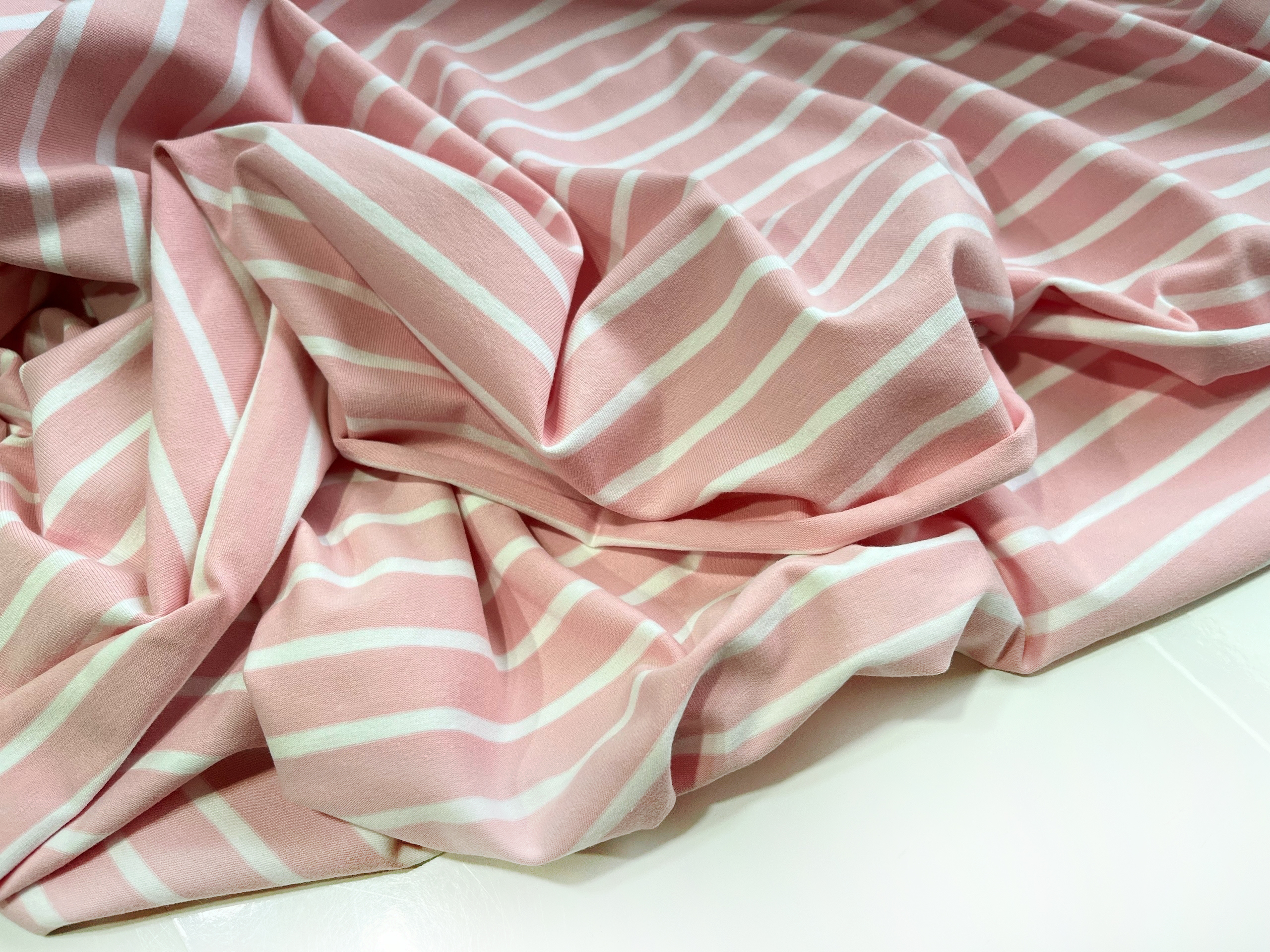 ПОЛОСКИ НА РОЗОВОМ - Кулирка с лайкрой, компакт пенье (КРВ704 Олеся)