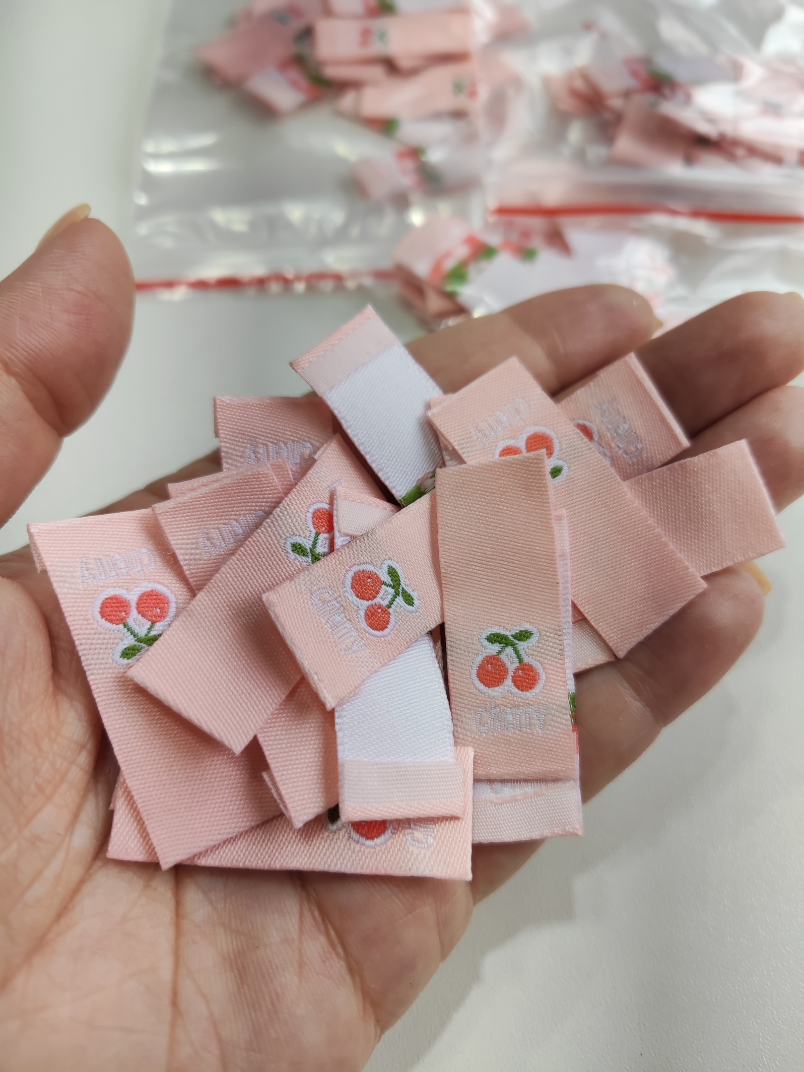 ВИШЕНКИ - Тканевая бирка 4х1,5см (1244)